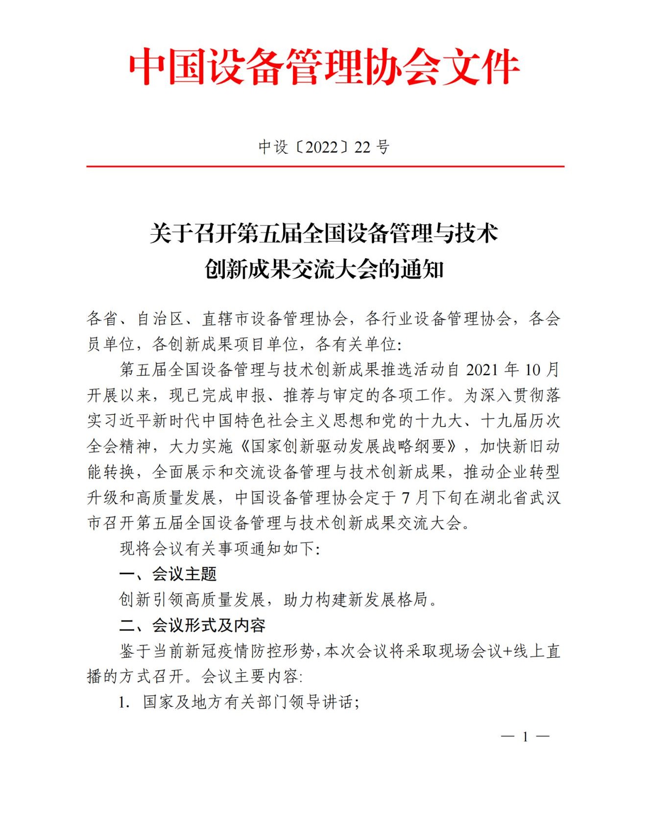 关于召开《第五届全国设备管理与技术创新成果交流大会》的通知
