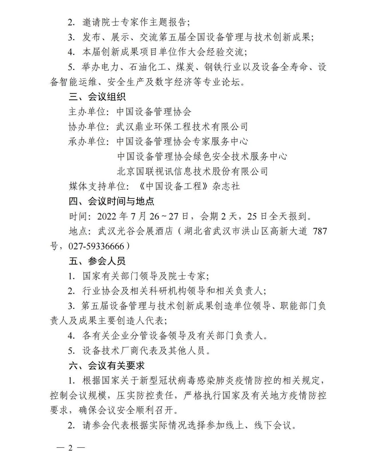 附件2:关于召开《第五届全国设备管理与技术创新成果交流大会》的通知原文件下载处