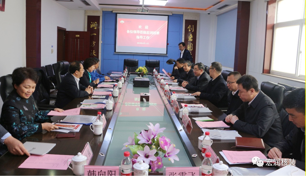 4月11日,河钢集团有限公司党委常委、副总经理、首席技术官王新东带领集团物流、钢研总院、唐钢、邯钢、舞钢、石钢、军工部等部门领导来宏润核装考察调研,并进行了深入的交流座谈;沧州市人民政府副市长梁英华、刘强,沧州市人民政府副秘书长肖华,盐山县人民政府县长丁清波、政府办主任张叔庆,宏润核装董事长刘春海、总经理刘强等陪同。