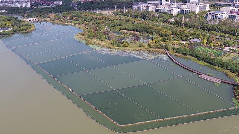 蠡湖生态修复区与对照区水质对比,水清处是实施生态修复的区域,张运林供图