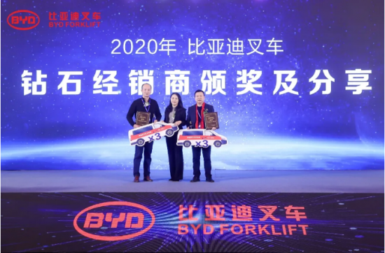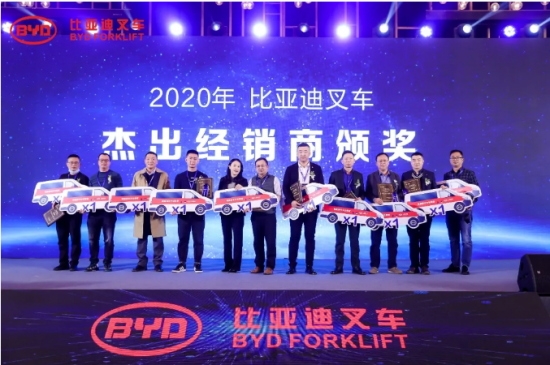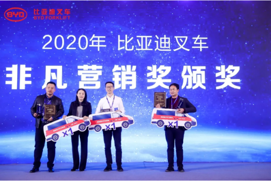 大会同时颁发了非凡营销奖、卓越经销商奖项,也对在2020年销售业绩表现突出的经销商进行了奖励,以感谢他们对比亚迪叉车发展做出的杰出贡献。