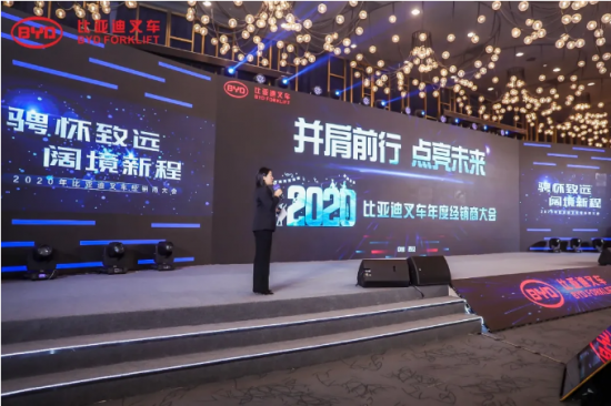 1月6日,以“骋怀致远,阔境新程”为主题的2020年比亚迪叉车经销商大会在陕西西安隆重召开。比亚迪叉车总经理毕国忠先生与事业部各高层领导,以及全国各地的杰出经销商代表、行业协会、媒体朋友们欢聚一堂,共同分享喜悦、见证荣耀,展望新能源叉车的未来发展宏图。