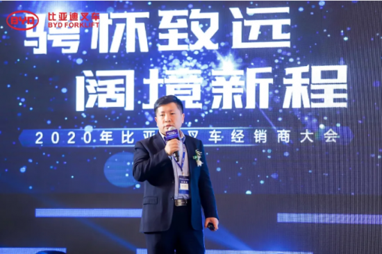 接下来,由比亚迪叉车总经理毕国忠先生致辞,毕总首先对在座嘉宾的莅临表示感谢,并指出2020年受疫情影响,对诸多行业来讲都是较为艰难的一年,但比亚迪叉车在此种市场环境下,依然实现了逆势增长,面对汹涌的浪潮和百变的形态,我们依然坚守于产品本身的价值。