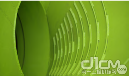 中联重科独家发明专利的双对数变螺距第三代T型搅拌叶片,实现混凝土的多相三维立体搅拌,解决前后端积料及离析问题,出料残余率低至0.4%以下 。