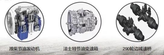 法士特变速箱与潍柴发动机,黄金搭档强强联合,动力澎湃,10档加大型副箱同步器,性能和寿命全面提升,充分满足不同工况。