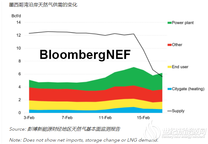 尽管地区天然气产量一夜之间下降了60亿立方英尺/天,腰斩50%,但市场有效地将燃料供应转移到需求中心。进入LNG终端的进料气需求减少50%,转而用作供暖和发电勇气。与30天滚动平均值相比,2月15日-21日一周内供暖用气平均增长40%,发电用气增长90%。