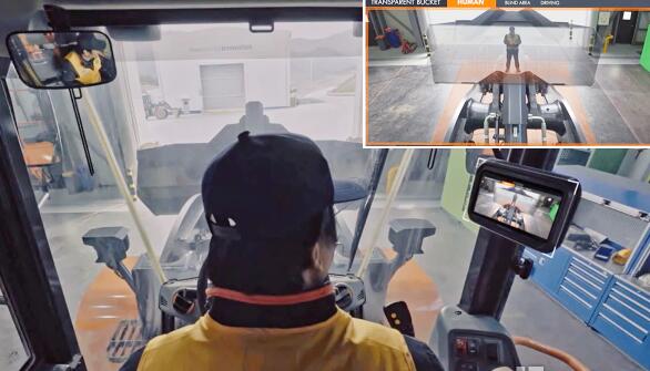 “可视度”由摄像头提供,实时提供操作员在提升铲斗时通常看不到的这些图像。位于顶部和底部的摄像机采用曲线投影的方法显示在操作员的视野中。斗山表示:“司机不仅可以用监视器轻松检查铲斗前的盲点,以防止安全事故。还可通过在装载和卸载期间以及承载负载时提供前视图来帮助提高生产率。”